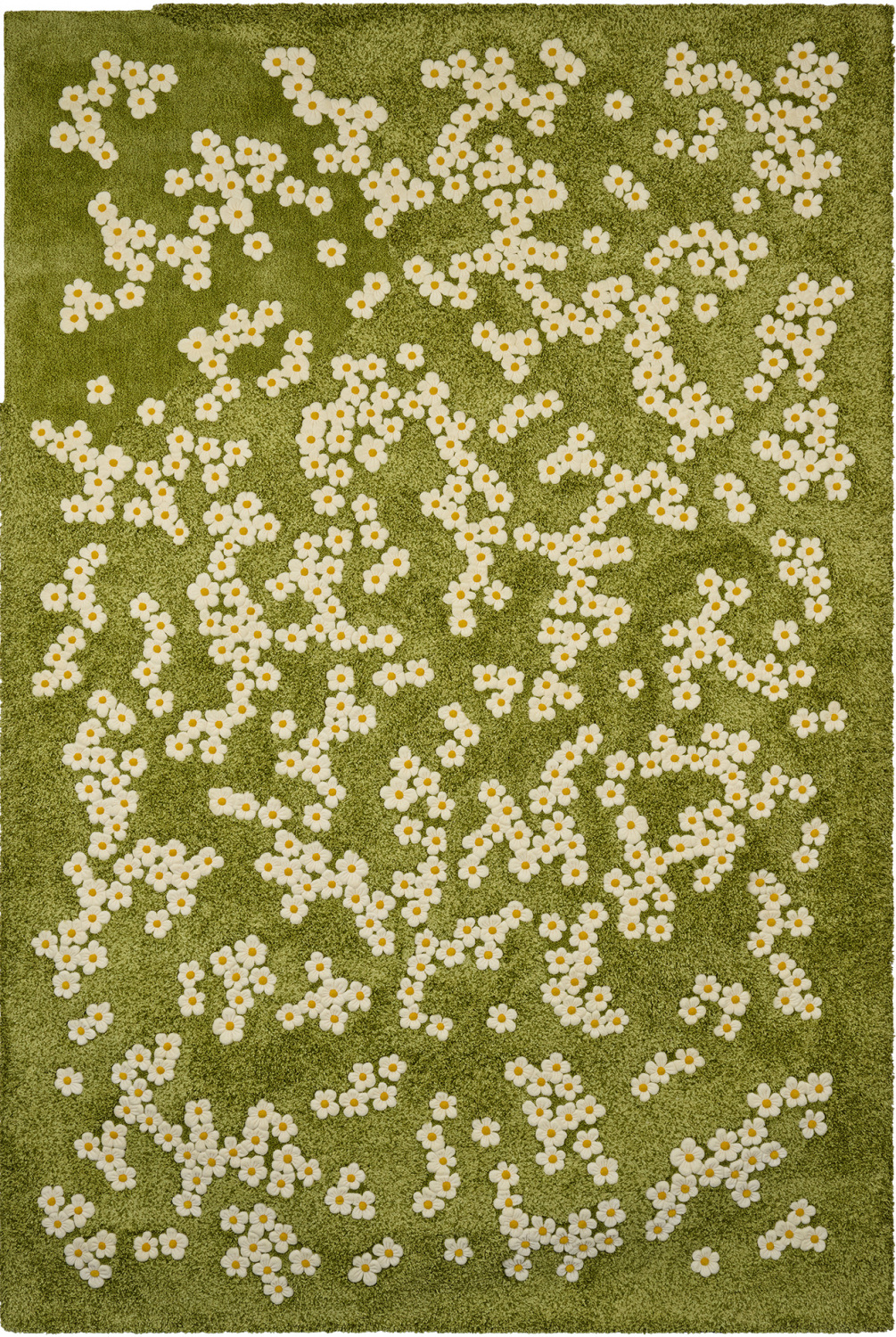 Botanical Heart, d'un vert intense, a été tufté à la main avant d'être sculpté par les artisans dans l'atelier de finition de la manufacture Tai Ping.