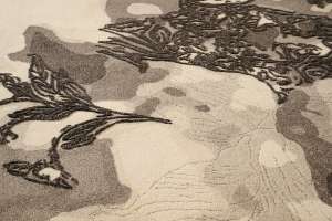 Un foisonnant bouquet, dont le tracé monochrome évoque la gravure, se déploie sur la surface de Floras Natural dans une harmonie de ton sur ton de laines naturelles.