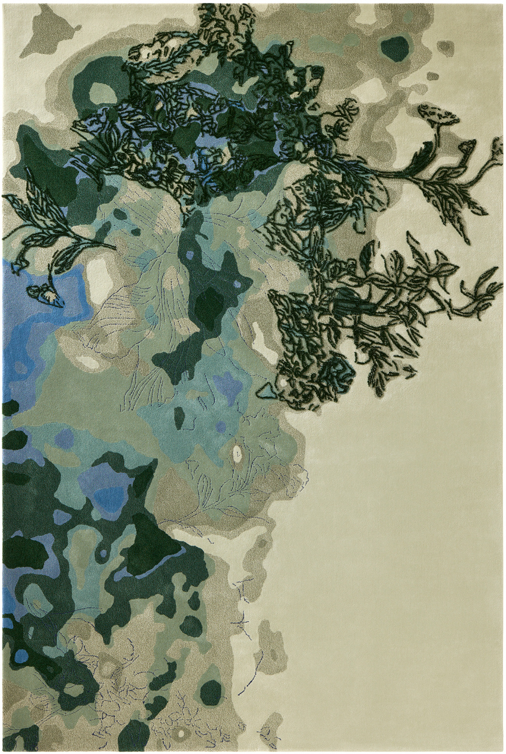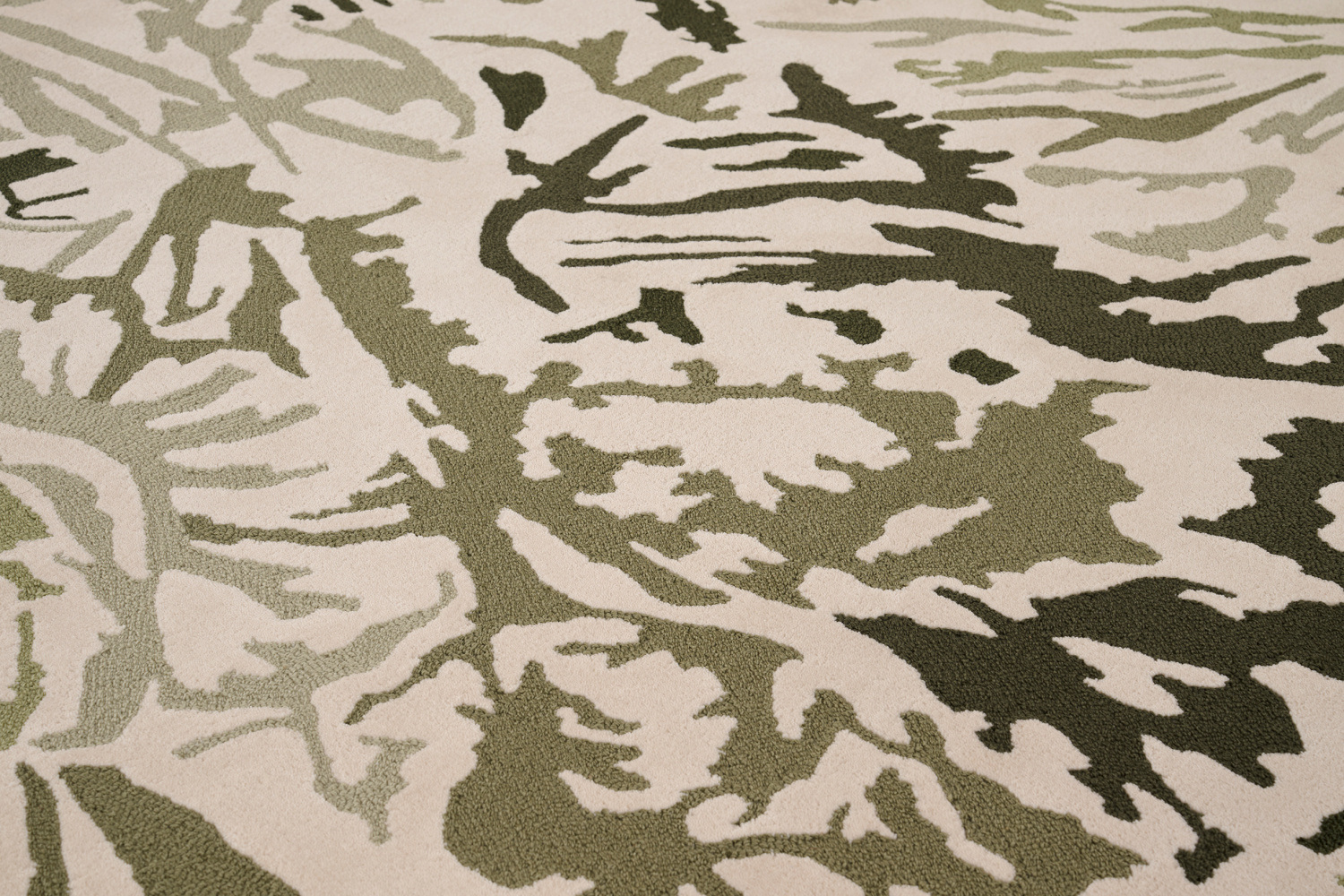Les huit créations de la collection Biophilic portent le nom d’huiles essentielles. Différentes teintes de laine - du très blanc à une gamme de laines berbères, feutrées et en forme de lacets - sont juxtaposées à des soies, des mélanges de cachemire, à de la jute et à du lin. Toute l'expertise de Tai Ping en matière de tuft à la main est exposée dans cette collection.