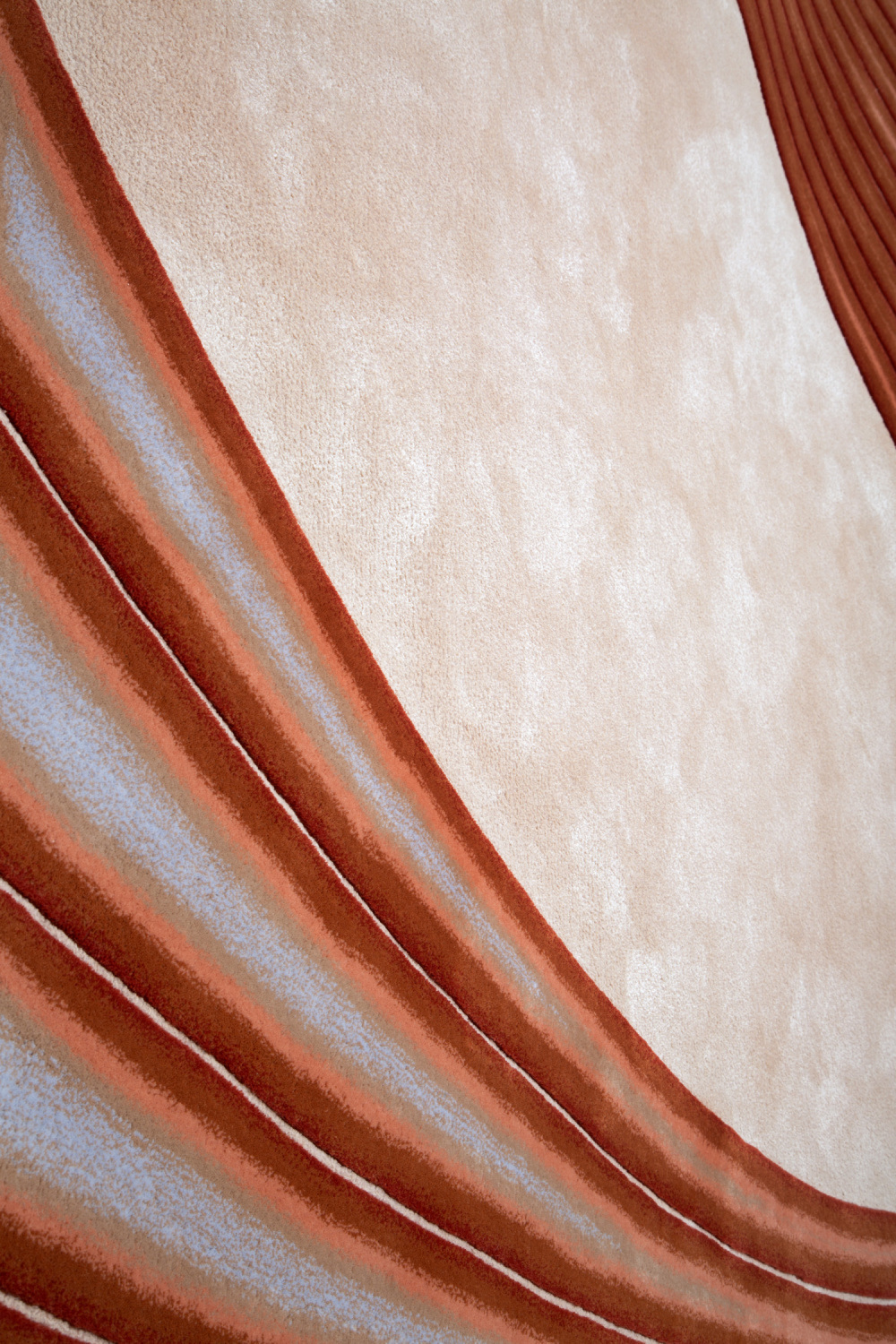 La collection On-The-Fringe a commencé comme une exploration de l'artisanat du tufté main, présenté dans douze pièces aux abstractions géométriques qui créent une tridimensionnalité de manière libre et exagérée. Ces textiles peuvent recouvrir le sol comme des tapis et peuvent également habiller les murs comme des tapisseries. Tous les motifs de cette édition sont tuftés de manière experte par des artisans qualifiés.